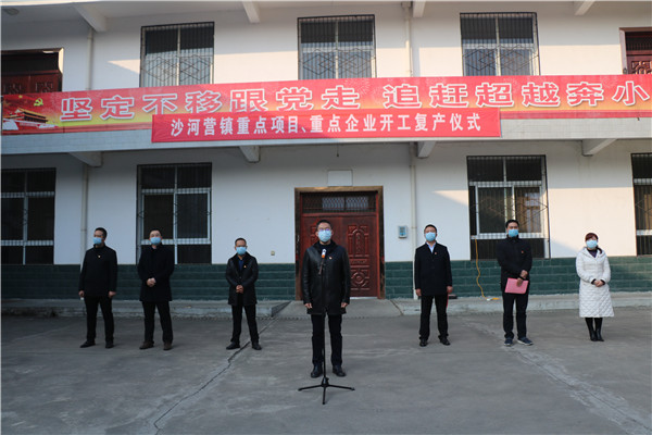 开工仪式上,,,沙河营镇党委副书记、、镇长肖利安紧紧围绕各开工复工的重点项目和重点企业在新型冠状病毒肺炎疫情期间防控防护和应对措施做了阐述,,要求各企业在保证员工健康安全的前提下,,,,加大生产力度,,,追赶一季度生产目标。。。。